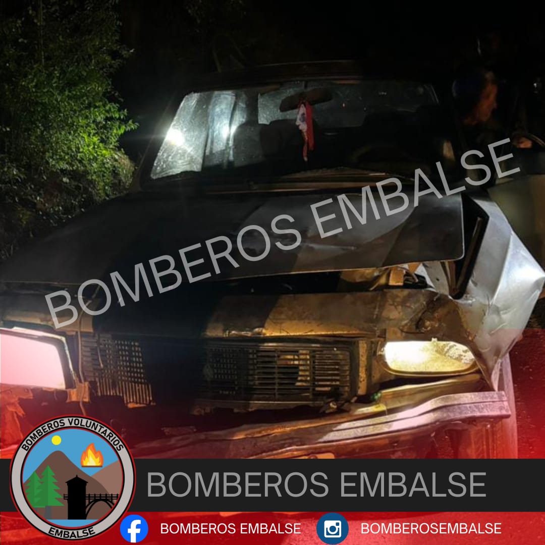 Personal de Bomberos Voluntarios de Embalse, junto a servicios de emergencia municipal, trabajaron en el lugar para asistir a los involucrados y asegurar la zona del accidente.