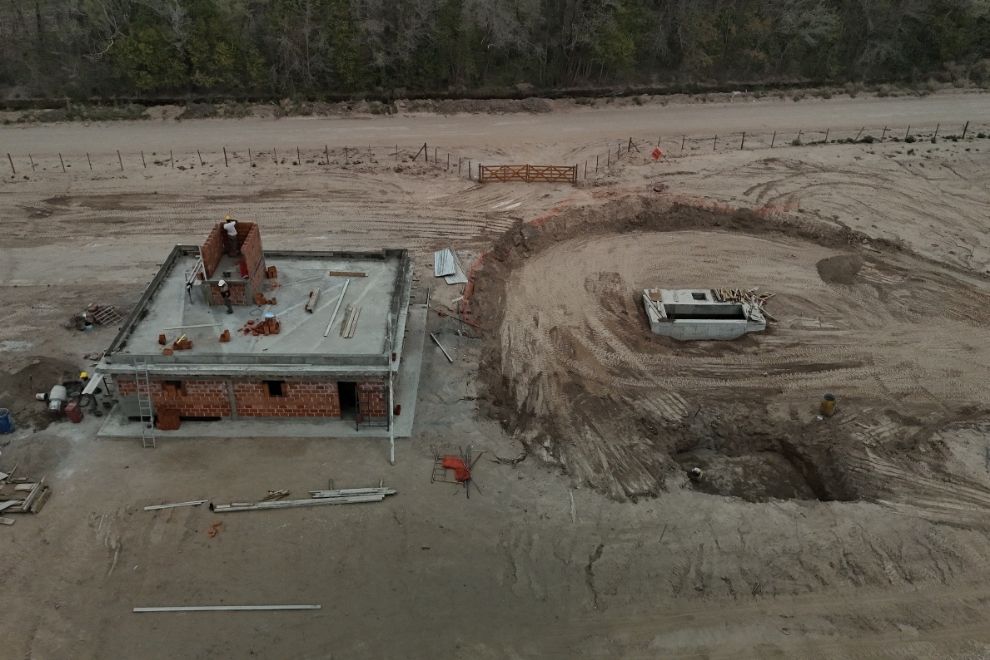 - El predio donde funcionará la futura planta de tratamiento, donde ya se construyen el edificio de control, el tren de ingreso, la sala de cloración y las cámaras intermedias.