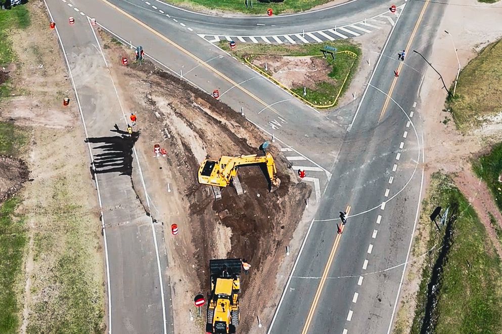 En Villa Rumipal, en tanto, se ejecuta una rotonda en el cruce de la Ruta Provincial 5 con la E-62, que facilitará maniobras más seguras mediante carriles específicos para giros.