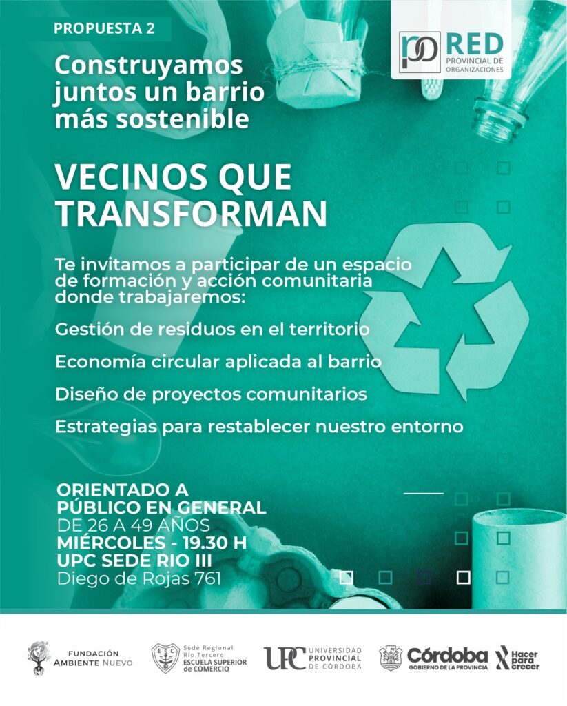 La Sede Regional Río Tercero de la Universidad Provincial de Córdoba (UPC), bajo el marco de la Red Provincial de Organizaciones, ha lanzado una convocatoria abierta a toda la comunidad de nuestra zona para participar en un ciclo de formación y acción ambiental. Esta iniciativa, impulsada junto a la Fundación FAN (Ambiente Nuevo), busca dotar de herramientas prácticas a los ciudadanos para fomentar prácticas sostenibles en el territorio.