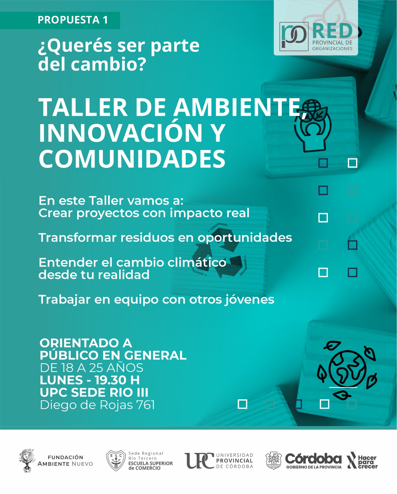 - Ambiente, Innovación y Comunidad: Una propuesta orientada al público en general. Los encuentros se realizarán los lunes a las 19:30 hs. en la sede de la UPC.