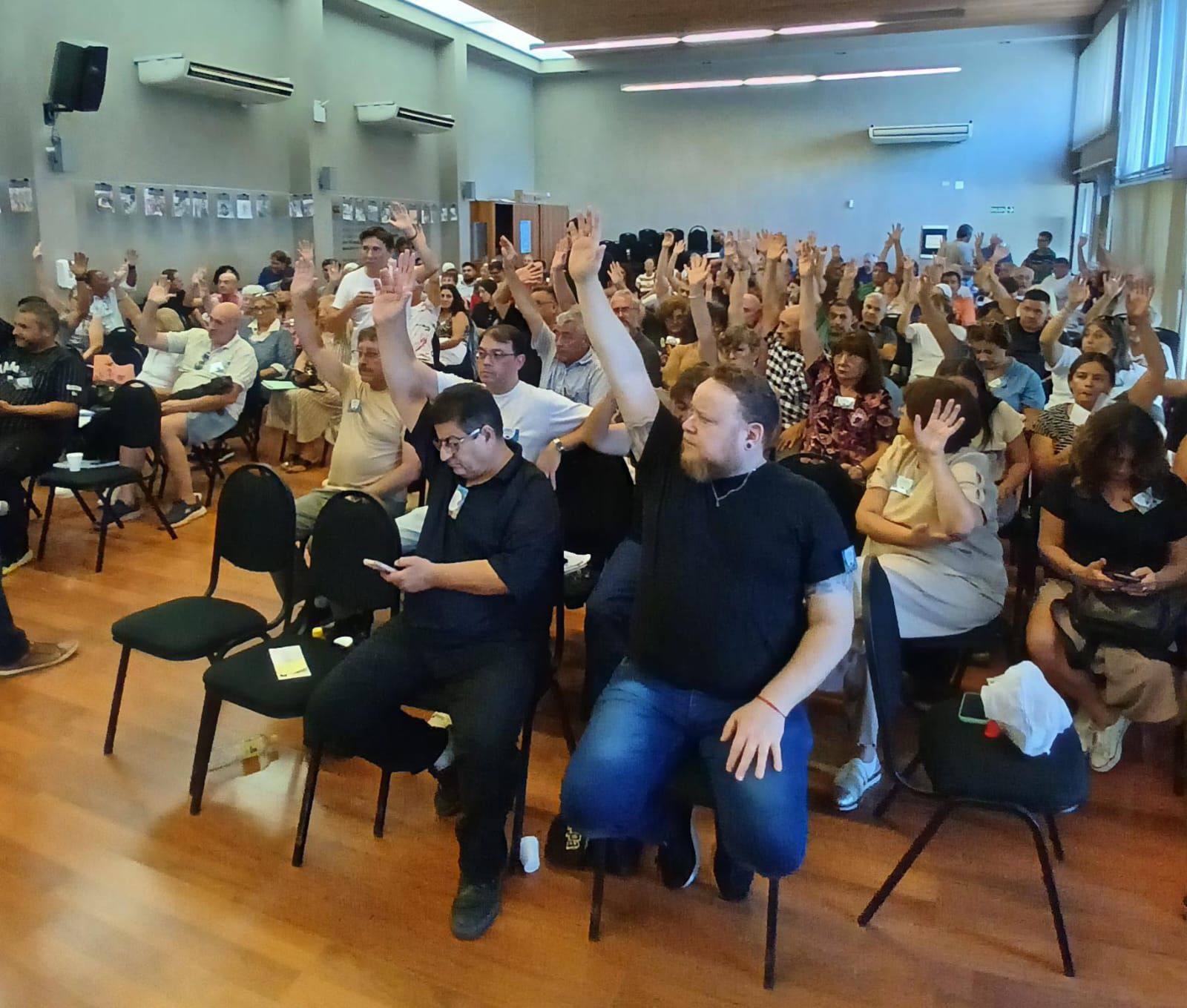 Tras dos meses de negociaciones y una jornada marcada por la tensión, la asamblea provincial de delegados votó a favor de la cuarta propuesta del Ejecutivo. El acuerdo garantiza un piso de aumento de entre el 18% y el 23% para abril y actualizaciones mensuales por IPC a partir de mayo. Hubo incidentes y enfrentamientos en las afueras del gremio.