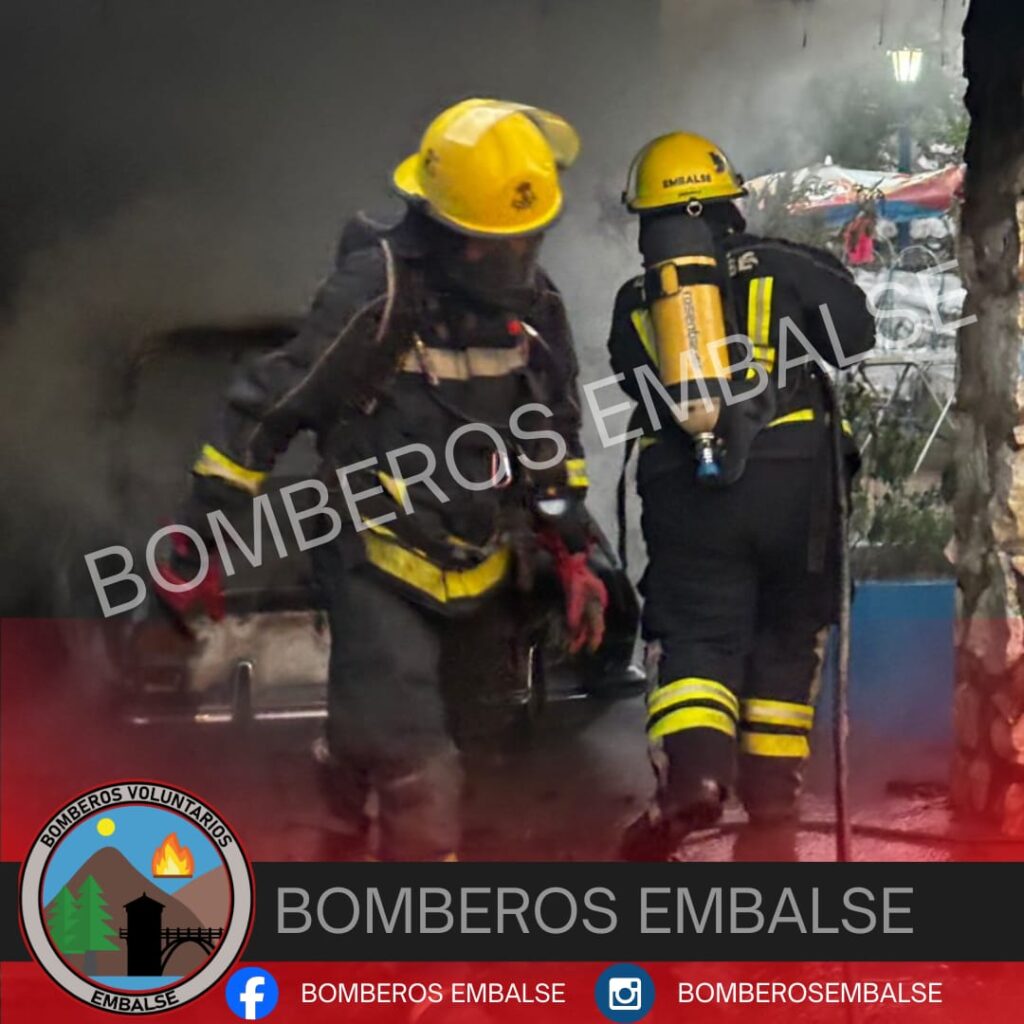 En horas de la madrugada de este domingo, Bomberos Voluntarios de Embalse acudieron a un incendio de dos vehículos ocurrido en una cochera de la localidad de Segunda Usina, en el departamento Calamuchita.