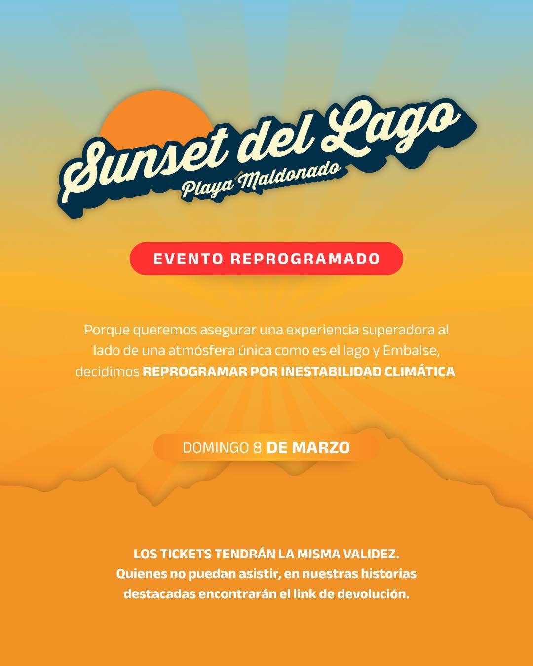 El evento se llevará a cabo finalmente el domingo 8 de marzo, manteniendo la propuesta original pensada para disfrutar del atardecer frente al lago.