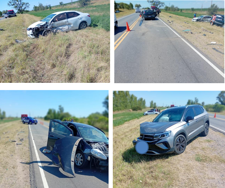 Por causas que se investigan, un automóvil Fiat Punto, conducido por un hombre de 29 años, colisionó de frente contra un Toyota Corolla, en el que se trasladaba un matrimonio de 50 años. A raíz del impacto, también se vio involucrado un Volkswagen Taos, conducido por un hombre de 37 años, quien viajaba junto a su pareja de 32 años y su hijo de tres años.