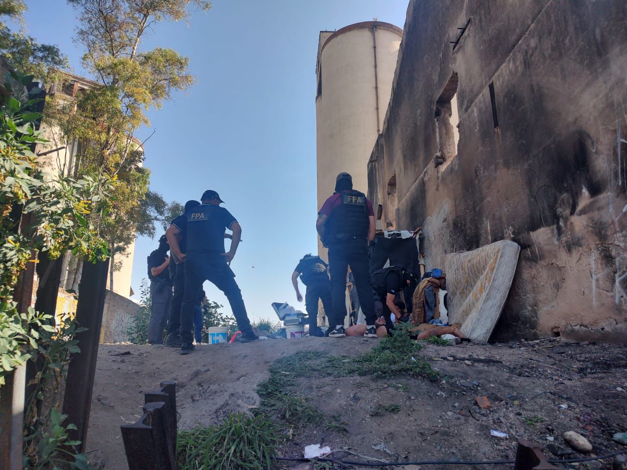 Durante el operativo, personal de la Fuerza realizó palpados preventivos y una inspección exhaustiva del asentamiento, utilizado además como lugar de pernocte por los acusados.