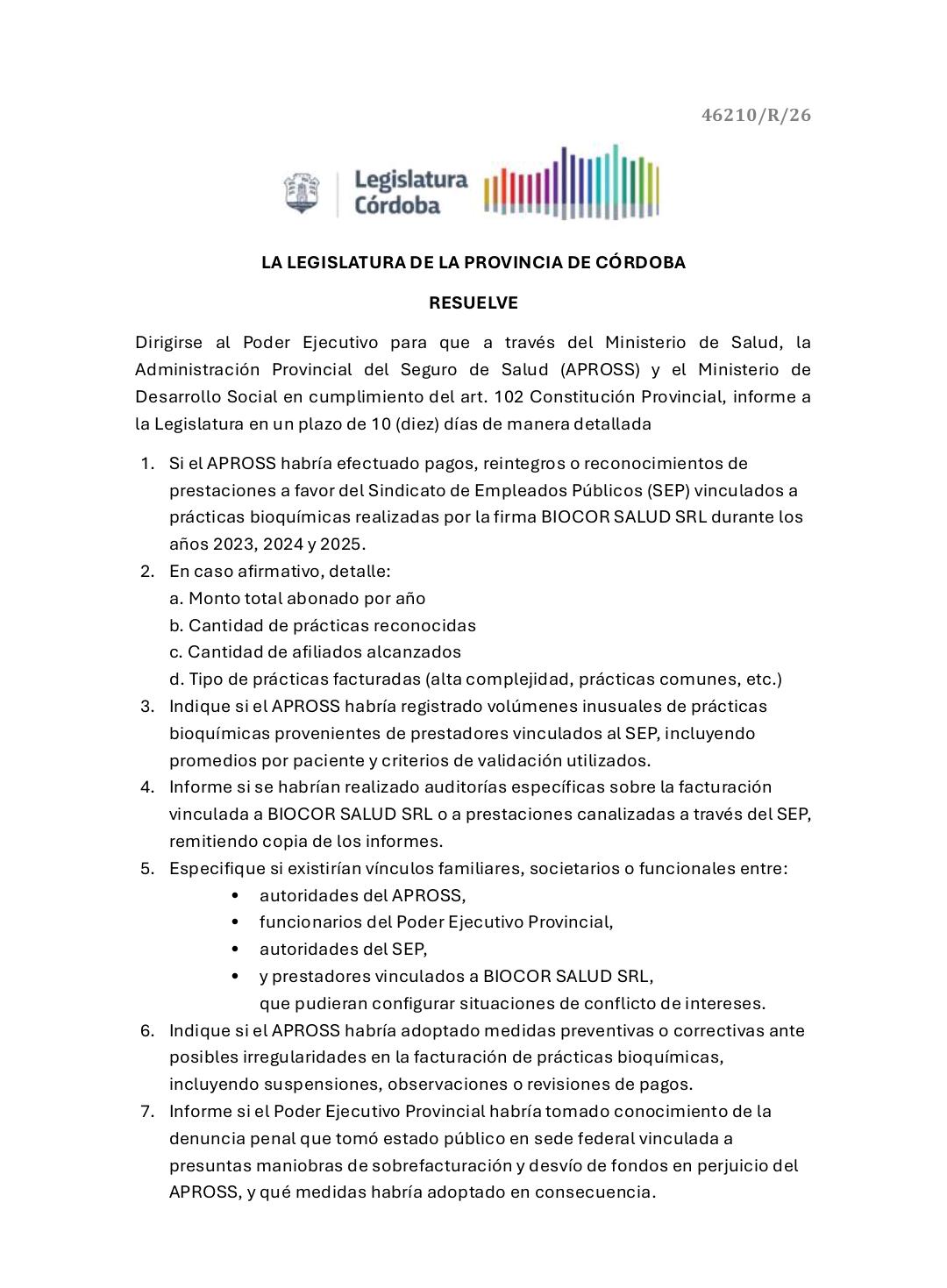 El pedido de informes presentado busca determinar si existieron fallas en los controles o vínculos impropios que permitieran estas supuestas irregularidades. Según Peirone, la salud no admite improvisaciones ni relatos, y mucho menos el manejo opaco de los recursos que pertenecen a todos los cordobeses.
