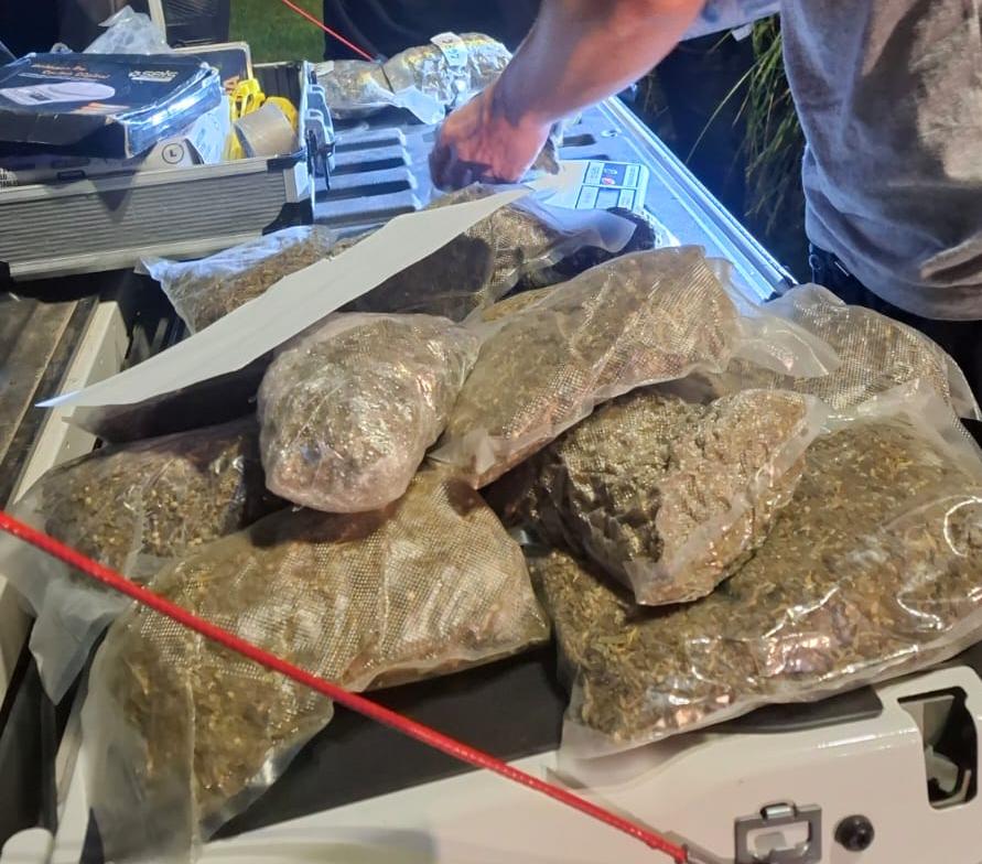 Ante la magnitud del hallazgo, se solicitó la colaboración urgente de la Fuerza Policial Antinarcotráfico (FPA). Los peritos de la fuerza especializada realizaron los test de reactivos químicos correspondientes, confirmando que se trataba de marihuana. El pesaje final arrojó un total aproximado de 30,079 kilogramos de dicha sustancia.