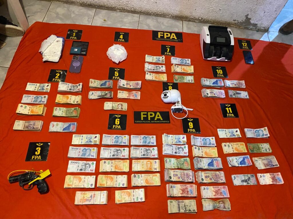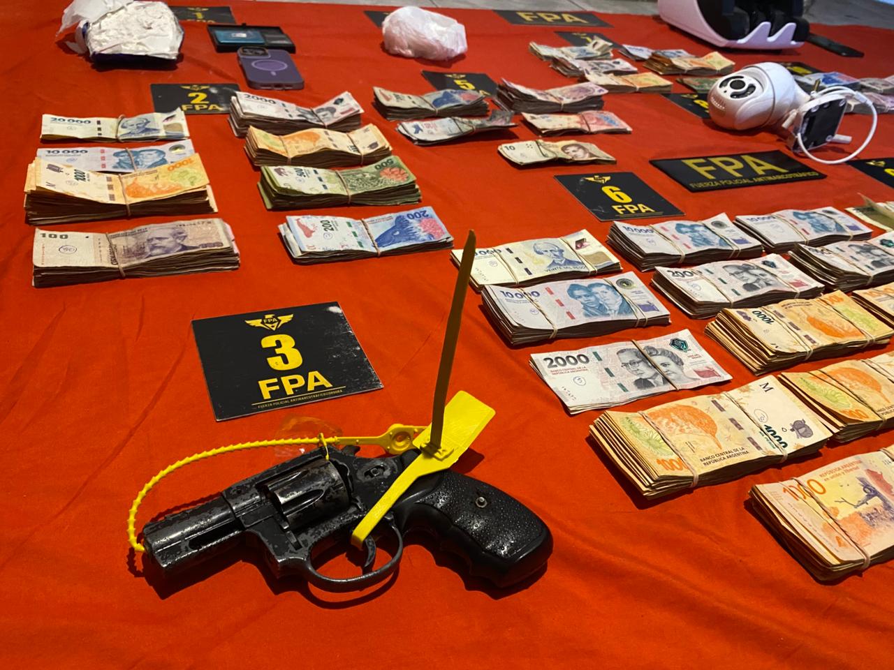 Tras una investigación de cinco meses, la FPA desbarató una compleja organización que operaba en barrio Oncativo. En un despliegue sin precedentes, se desmantelaron seis búnkeres de venta y se detuvo al líder de la banda. El operativo incluyó el secuestro de cocaína, marihuana, armas de fuego y tecnología para el conteo de dinero.