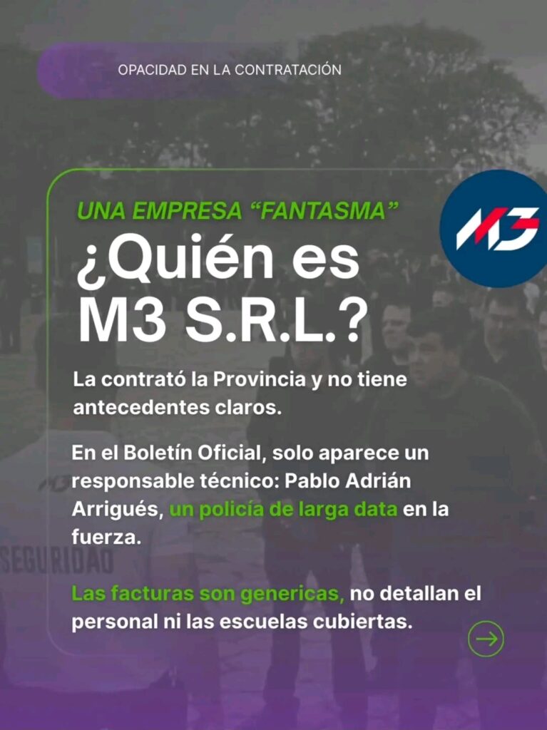 En ese marco, Peirone apuntó contra la empresa M3 S.R.L., a la que calificó como “desconocida”, señalando que —según su planteo— no contaría con información pública clara sobre sus responsables ni presencia institucional visible.
