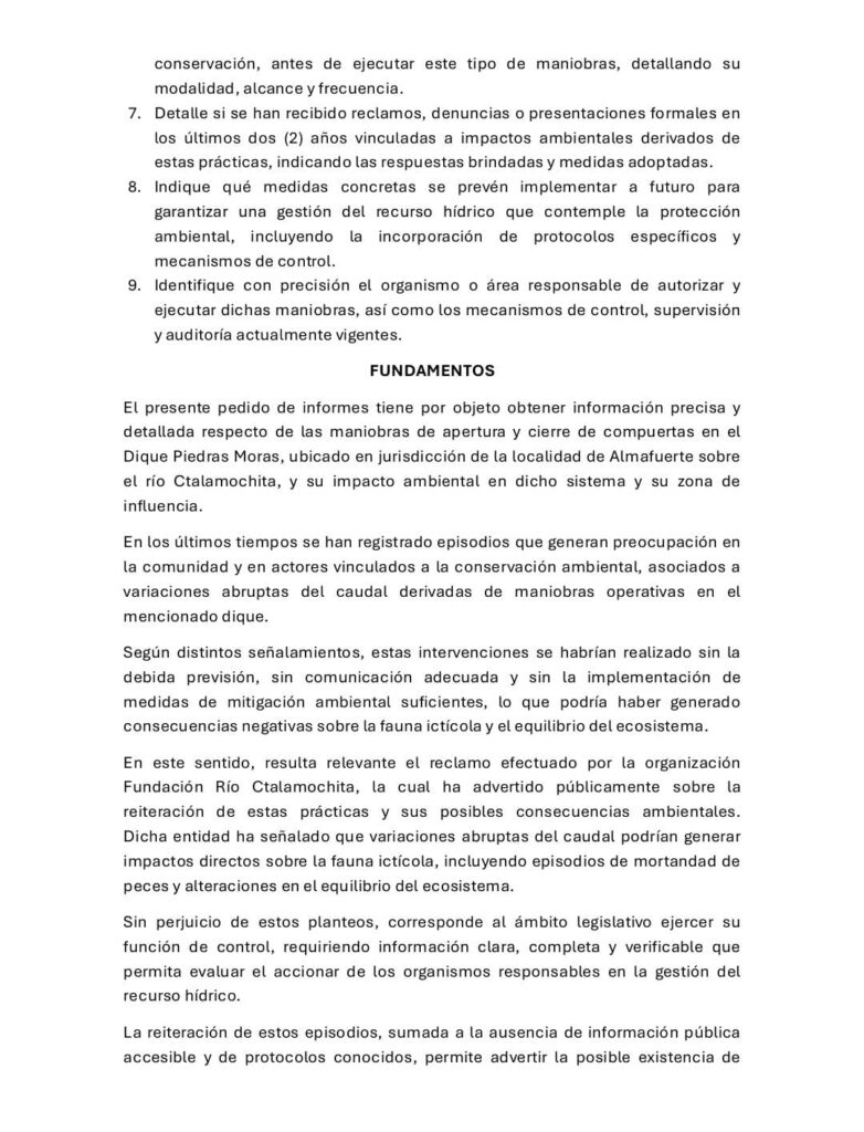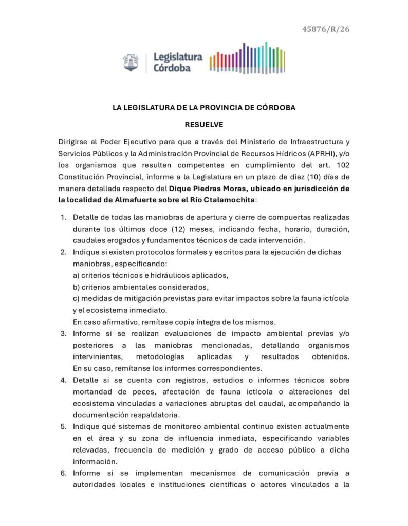 En ese sentido, también se menciona la preocupación expresada por la Fundación Río Ctalamochita, que viene alertando sobre los impactos que pueden generar este tipo de intervenciones cuando no cuentan con previsión adecuada.