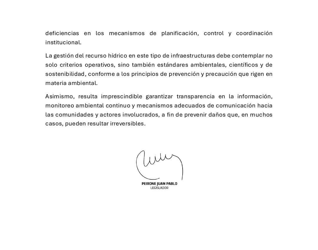 En este contexto, el pedido de informes busca avanzar hacia una gestión más responsable, con mayor control y transparencia en el manejo del agua en el ámbito provincial.