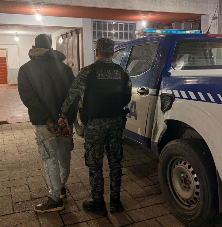 El hecho ocurrió en la intersección de calles Pringles y French y Berutti. El sospechoso, de 19 años, intentó huir a pie al advertir la presencia de la patrulla policial, pero fue capturado a los pocos metros. Quedó a disposición de la Justicia por infracción al Código de Convivencia.