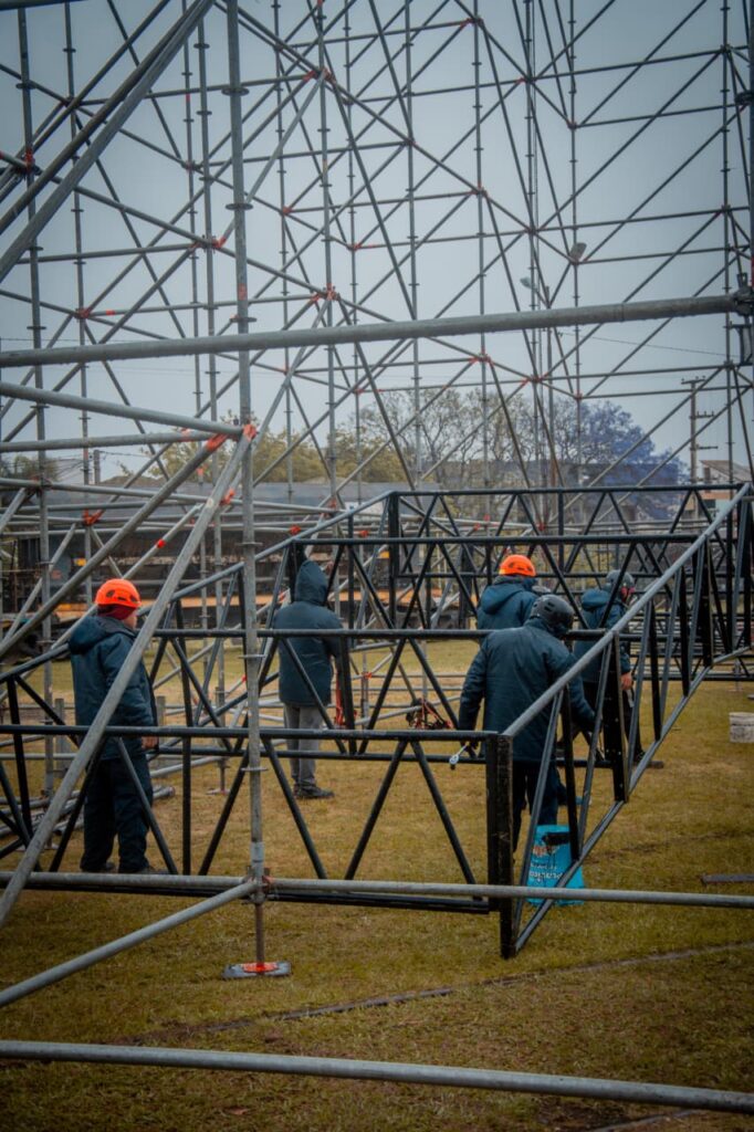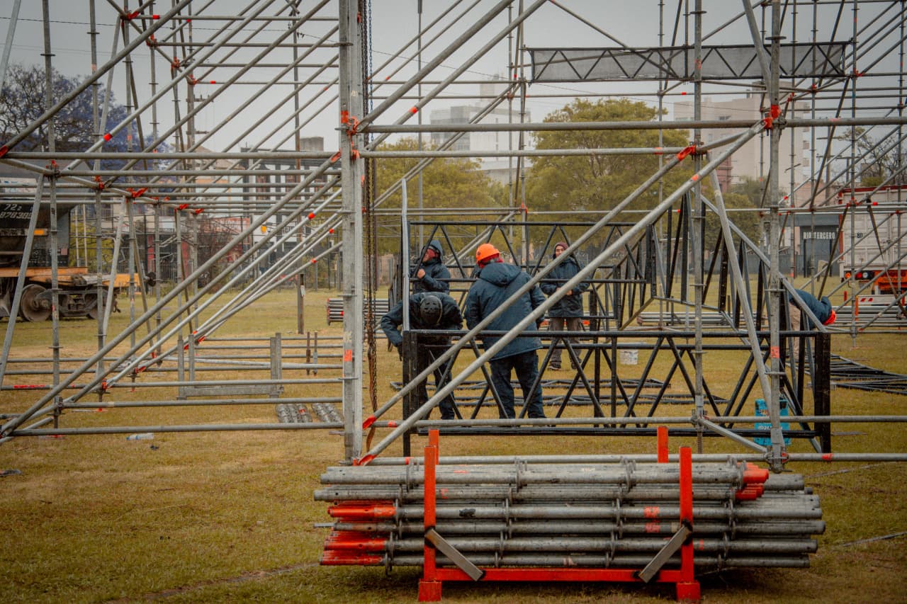 Desde la organización informaron que ya se iniciaron los trabajos de montaje del escenario central y del patio gastronómico en el Paseo del Riel, donde se desarrollarán las tres jornadas de esta esperada celebración.