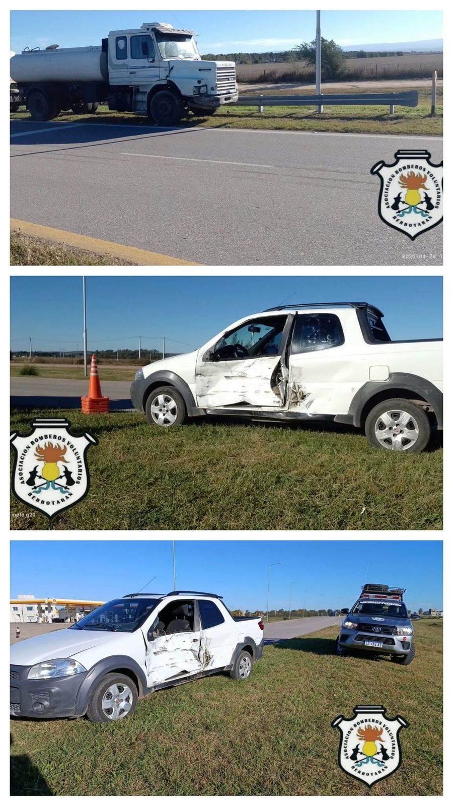 Al recibir el alerta, el cuartel de Bomberos Voluntarios de Berrotarán despachó de inmediato dos dotaciones con un total de seis efectivos. Al llegar al lugar, los servidores públicos constataron que, por razones que la justicia intenta establecer, un vehículo de menor porte había colisionado contra un camión, quedando el rodado menor con daños materiales visibles producto del impacto.