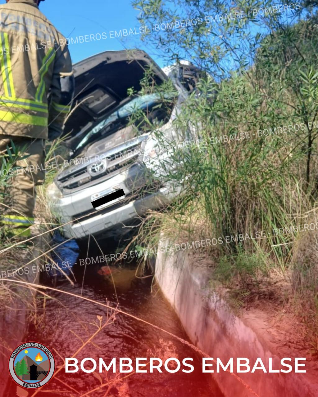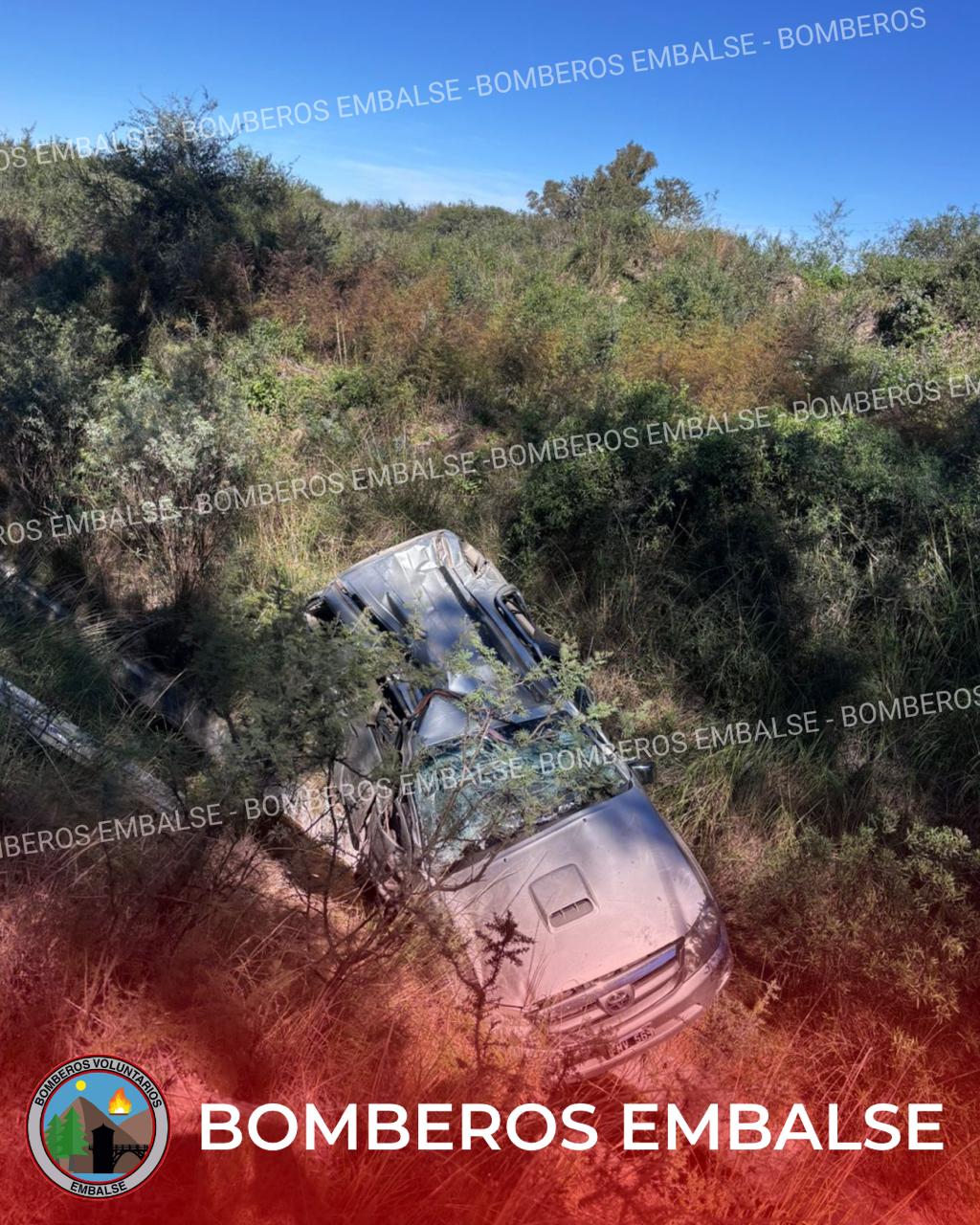 En el vehículo se trasladaba un hombre mayor de edad, con domicilio en nuestra ciudad de Almafuerte, quien viajaba junto a su hijo menor de edad. El fuerte impacto generó una rápida movilización de los servicios de emergencia de las localidades vecinas, dada la peligrosidad del terreno y la posición final en la que quedó el rodado.