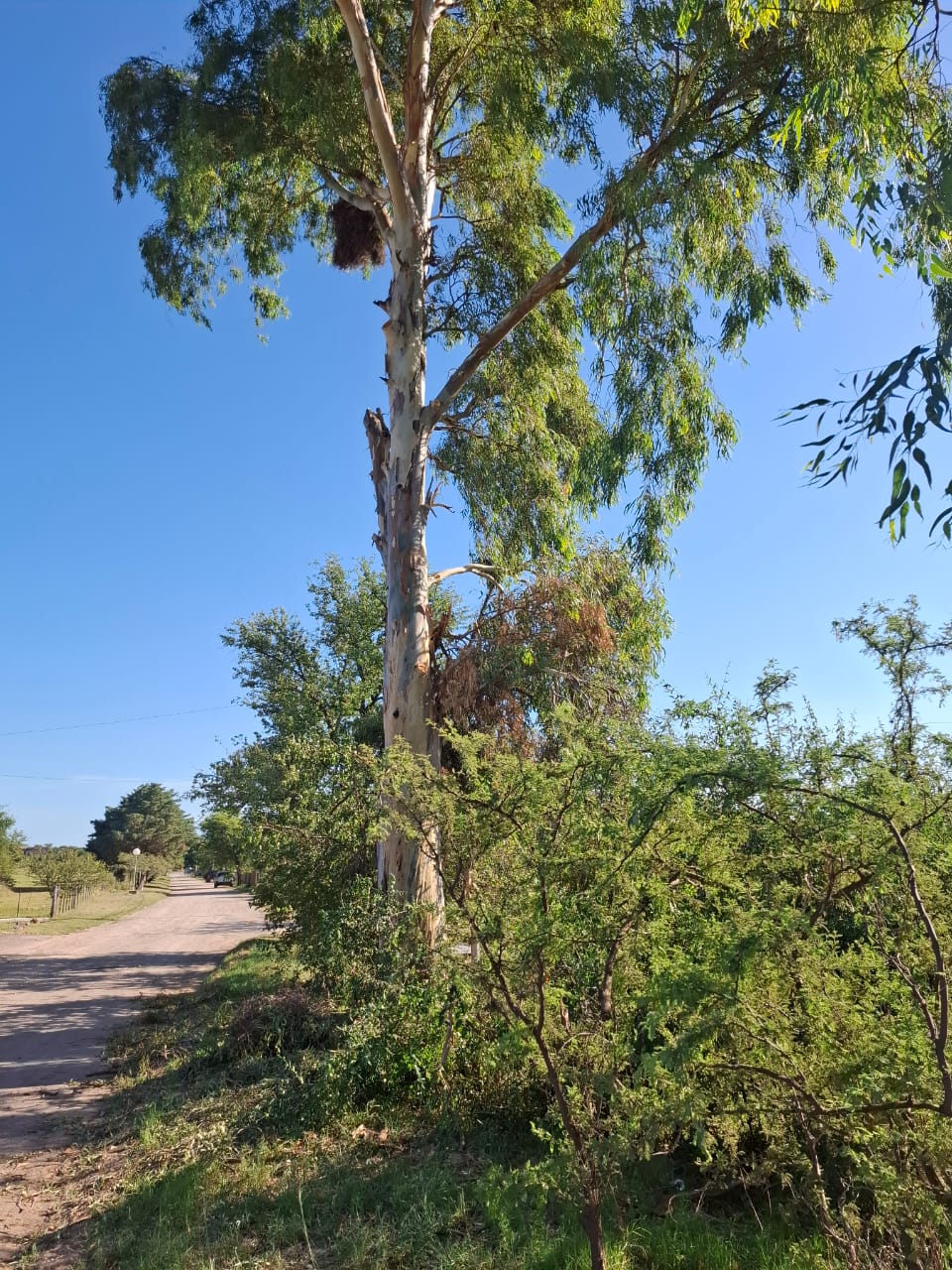 Un vecino de barrio Pinares manifestó su malestar por la tala de dos eucaliptos ubicados en la parte trasera de su vivienda, en el marco de la instalación de una nueva línea de alta tensión que ejecuta la cooperativa local.